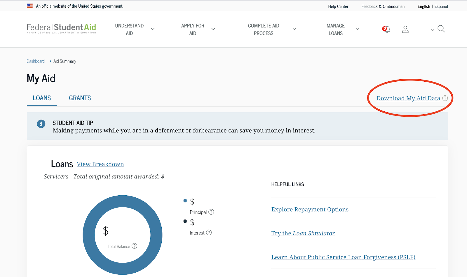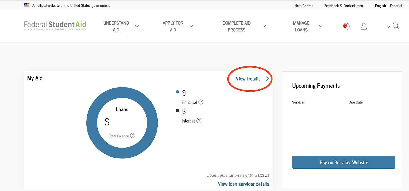 Primero, inicia sesión en tu cuenta en Federal Student Aid. (¿No estás seguro si tienes una cuenta? Consulta aquí para más información.)
