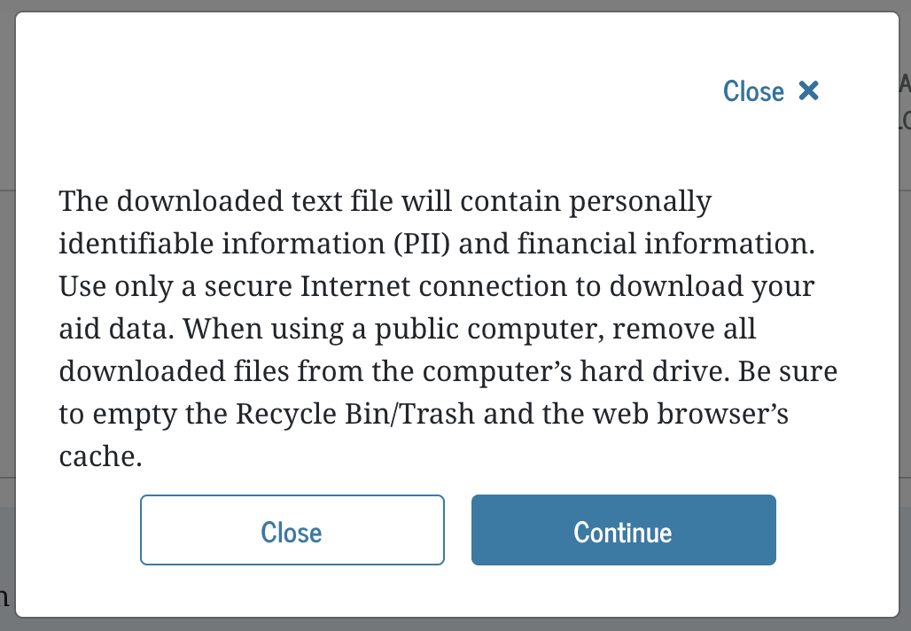 A continuación, haz clic en "Continuar" en esta ventana emergente. Un archivo llamado "MyStudentData.txt" se descargará automáticamente, y puedes subir el archivo a Summer.